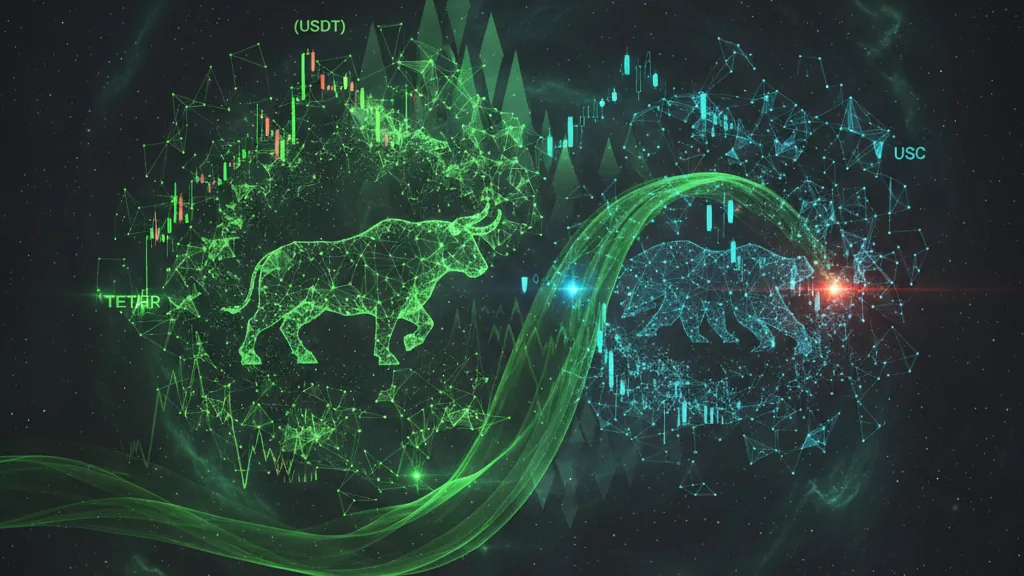 - 2Recent market data shows USDT maintaining approximately 70% of the combined market share between the two largest dollar-pegged tokens, while USDC's position faces mounting competitive pressure.